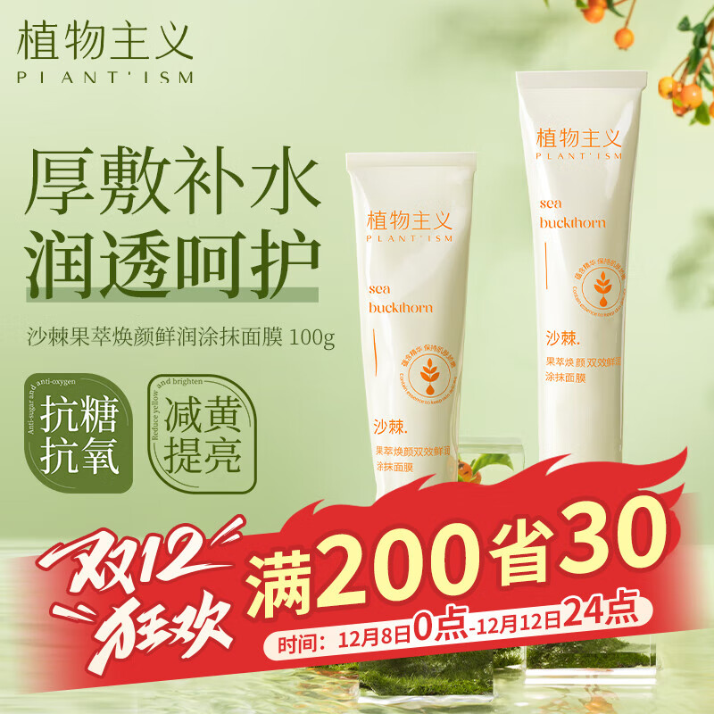包邮 植物主义面膜沙棘果萃焕颜涂抹式面膜提亮补水保湿细致毛孔准孕妇护肤用品 沙棘果萃涂抹面膜100g
